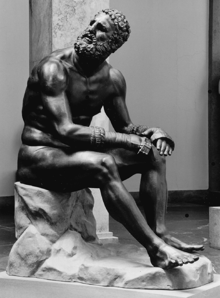 Die Bronzestatue eines Faustkämpfers wurde 1884 in den Fundamentgräben eines Gebäudes am Quirinal in Rom gefunden. Bei der Aufdeckung zeigte sich, daß sie dort in der Spätantike sorgfältig versteckt worden war, wodurch sich auch ihr vorzüglicher Erhaltungszustand erklärt. Dagegen bleibt der ursprüngliche Aufstellungsort der Statue ebenso ungewiß wie die Frage, ob es sich hier um ein Original oder eine römische Kopie handelt. Eine Künstlersignatur, die man auf den Schlagriemen zu erkennen glaubte, erwies sich nach der Restaurierung als spätere Zutat. Bis auf den Felssitz und kleinere Ausbesserungen wurden keine Ergänzungen vorgenommen. Die Augen muß man sich aus anderem Material eingesetzt vorstellen. Als einzige vollständige Darstellung eines Boxers in der Großplastik hat die Statue lebhafte Diskussionen in der Forschung ausgelöst, dennoch bleiben Fragen nach Heimat, Entstehungszeit und die genaue Bestimmung und Zuweisung zu einem Künstler offen.